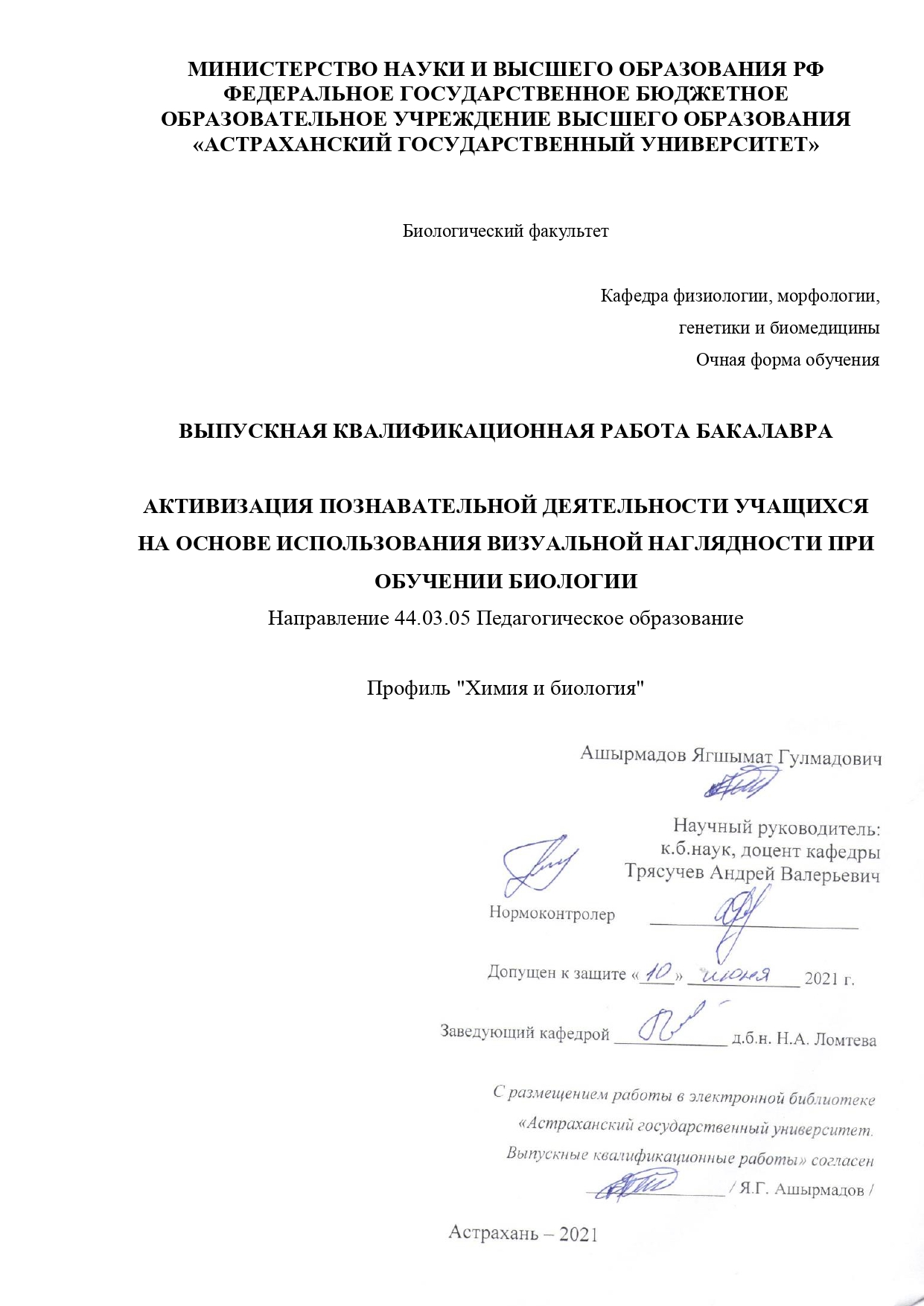 Трясучев Андрей Валерьевич, кандидат биологических наук, доцент
