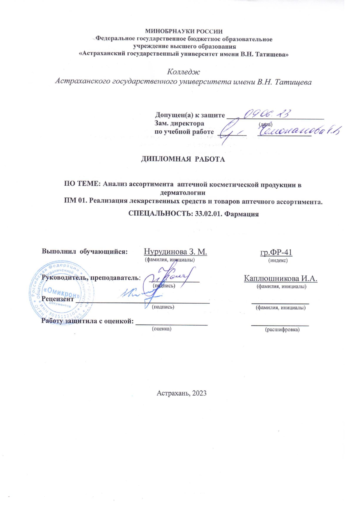 Колледж Астраханского государственного университета им. В.Н. Татищева