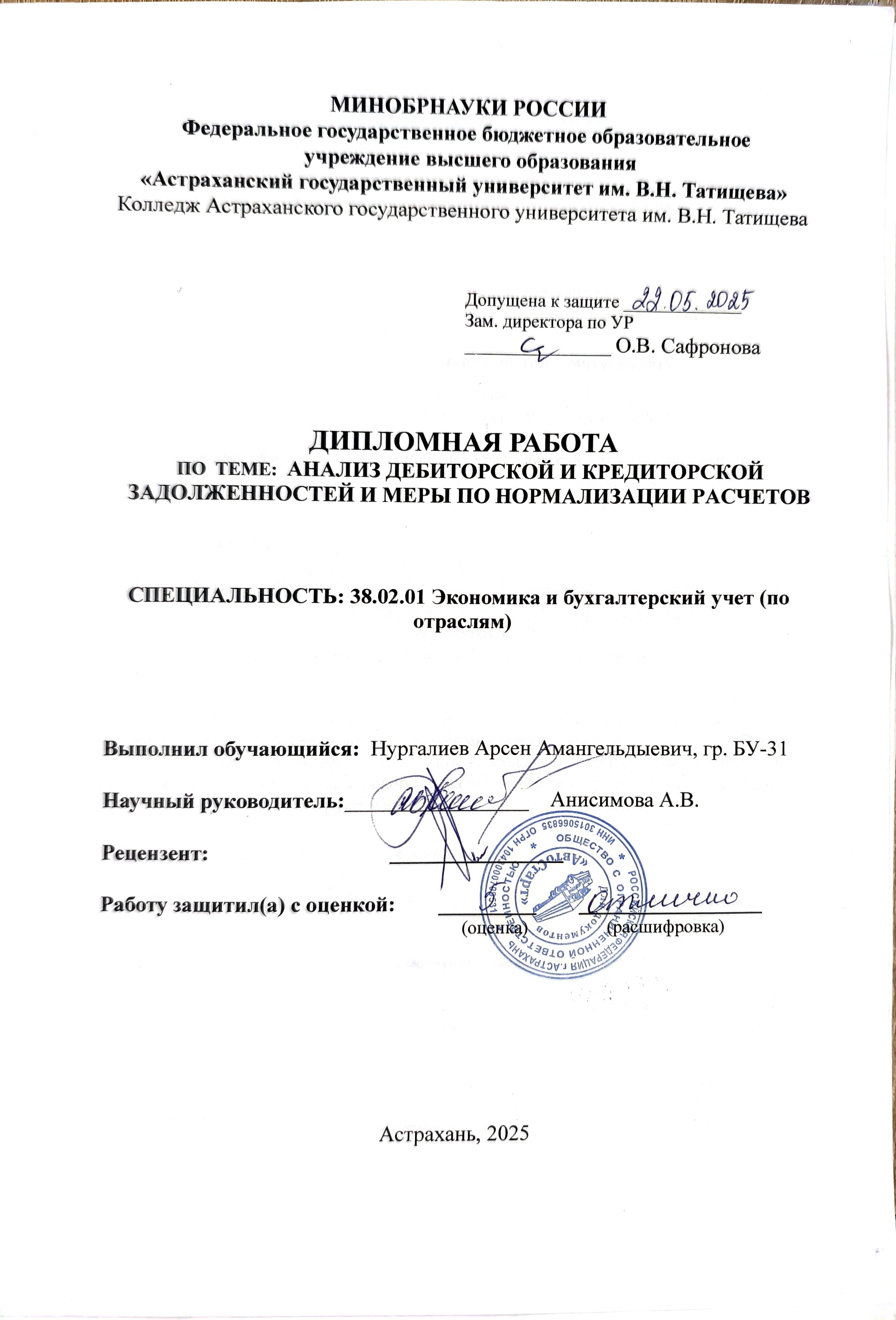 Анализ ,дебиторской, кредиторской ,задолженностей , меры ,нормализации ,расчетов