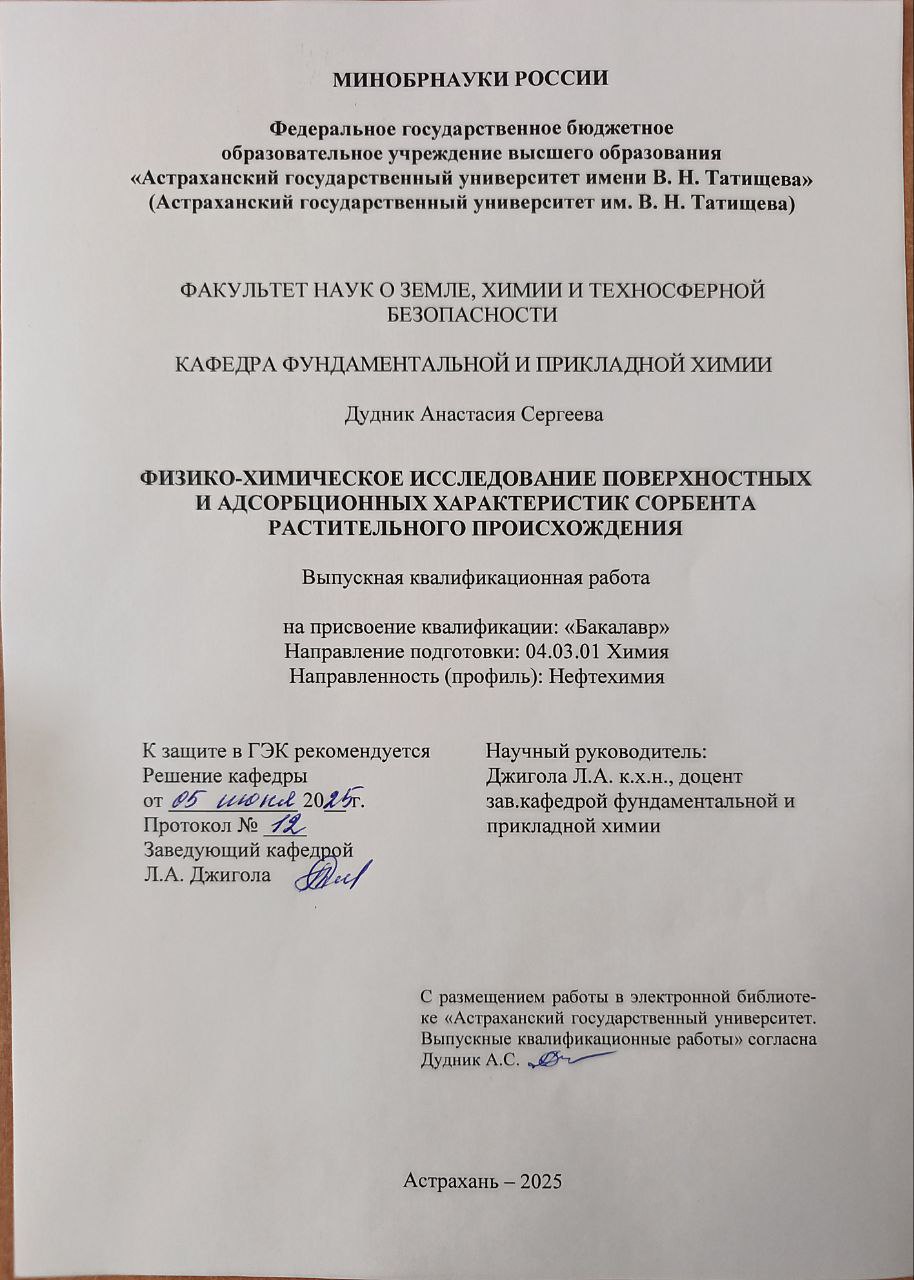 растительные сорбенты, адсорбция, адсорбционные свойства, скорлупа арахиса, физико-химические параметры