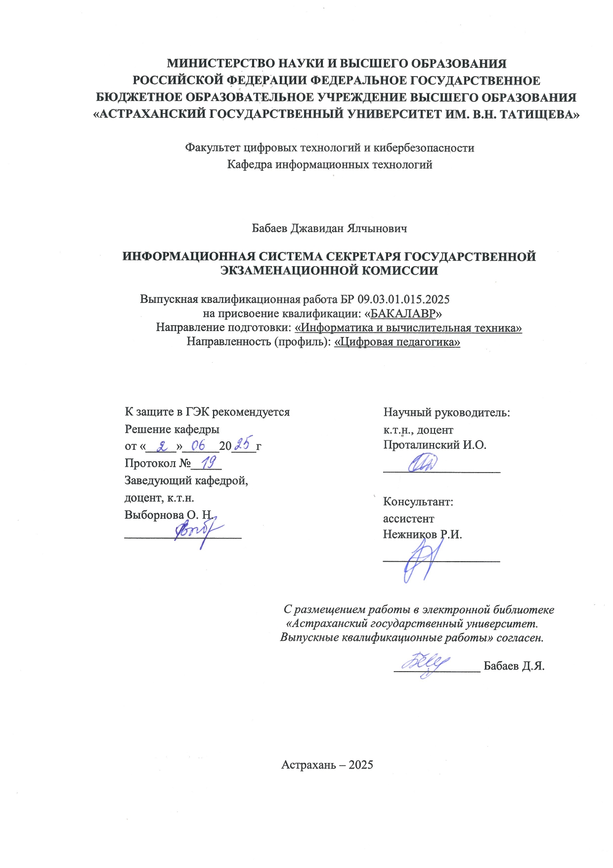 автоматизация, документооборот, секретарь ГЭК, информационная система