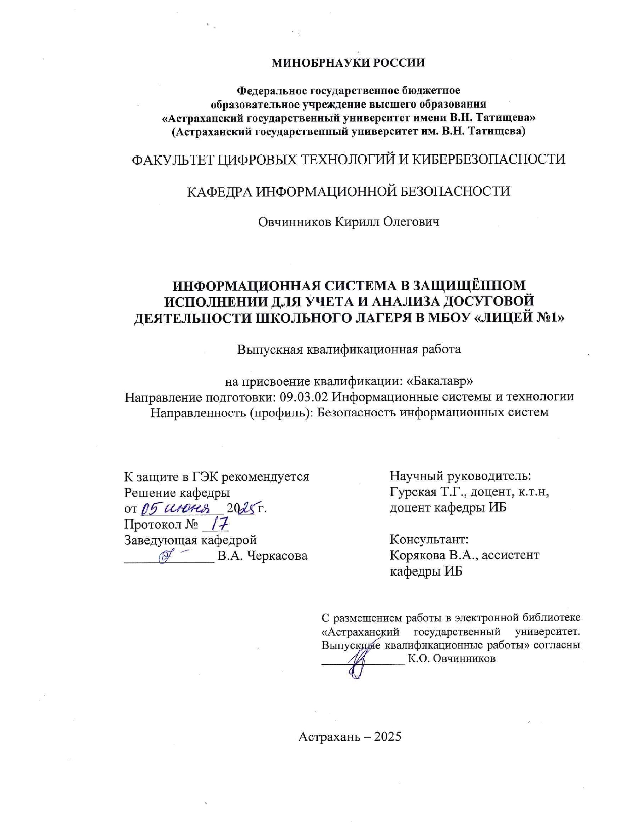 информационная система, защищённое исполнение, учет, анализ, досуговая деятельность, школьный лагерь, «Лицей №1»