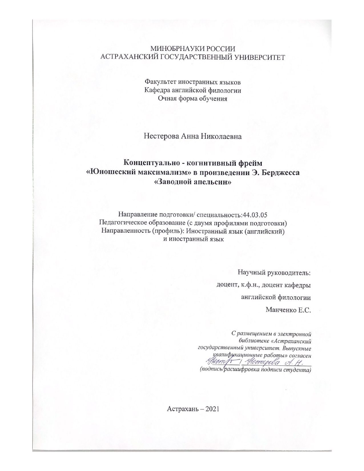Манченко Елена Сергеевна, кандидат филологических наук, доцент