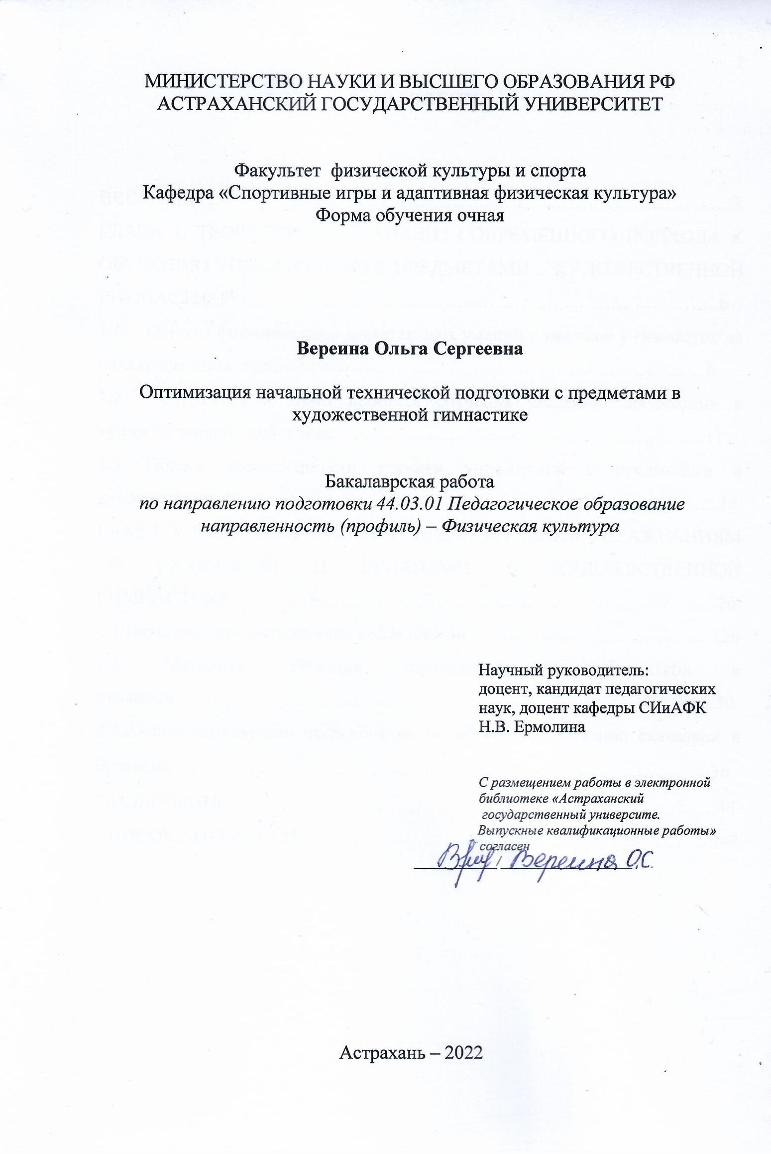 Ермолина Наталья Владимировна, кандидат педагогических наук, доцент