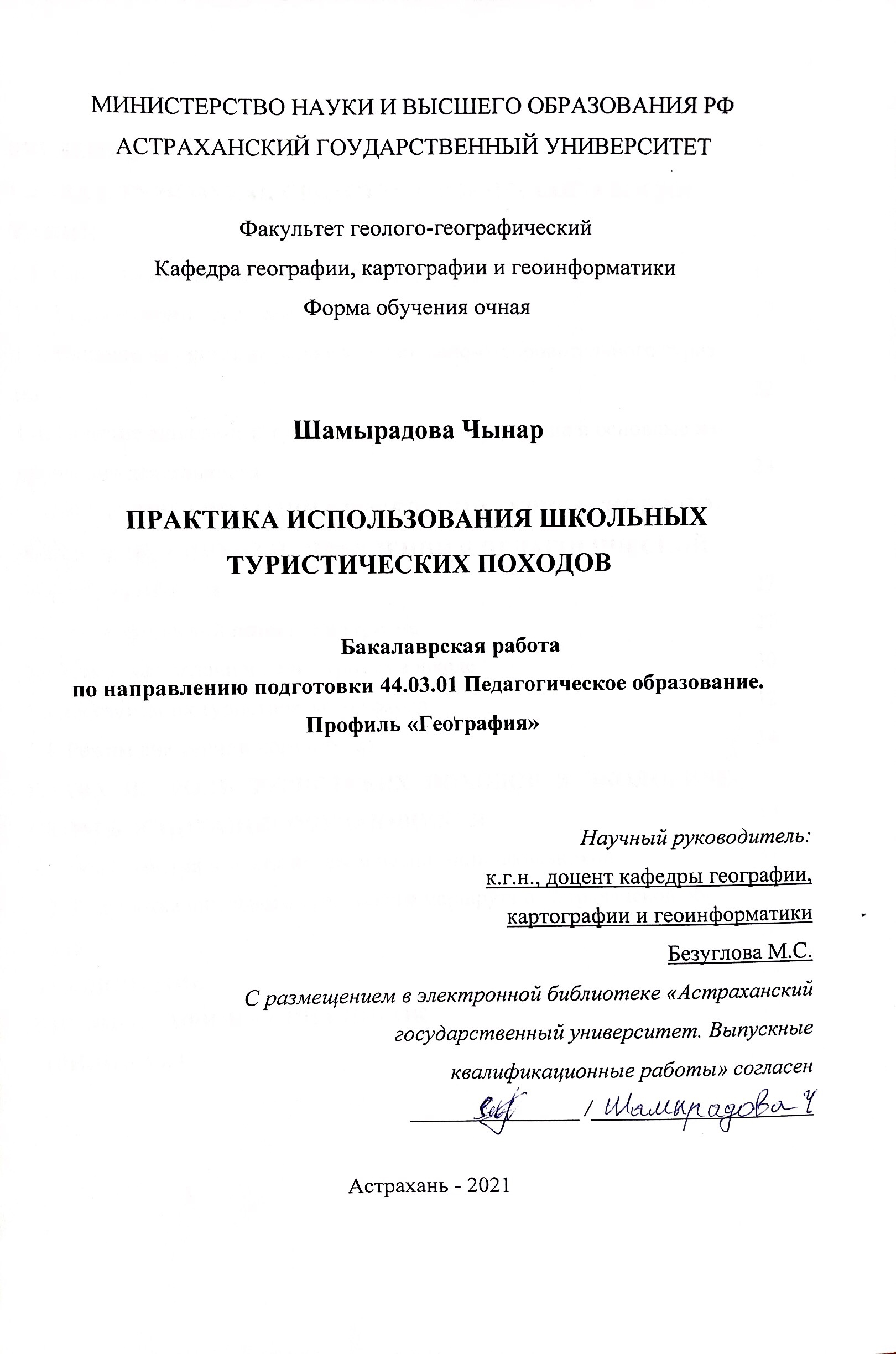 Безуглова Марина Сергеевна, кандидат географических наук, доцент