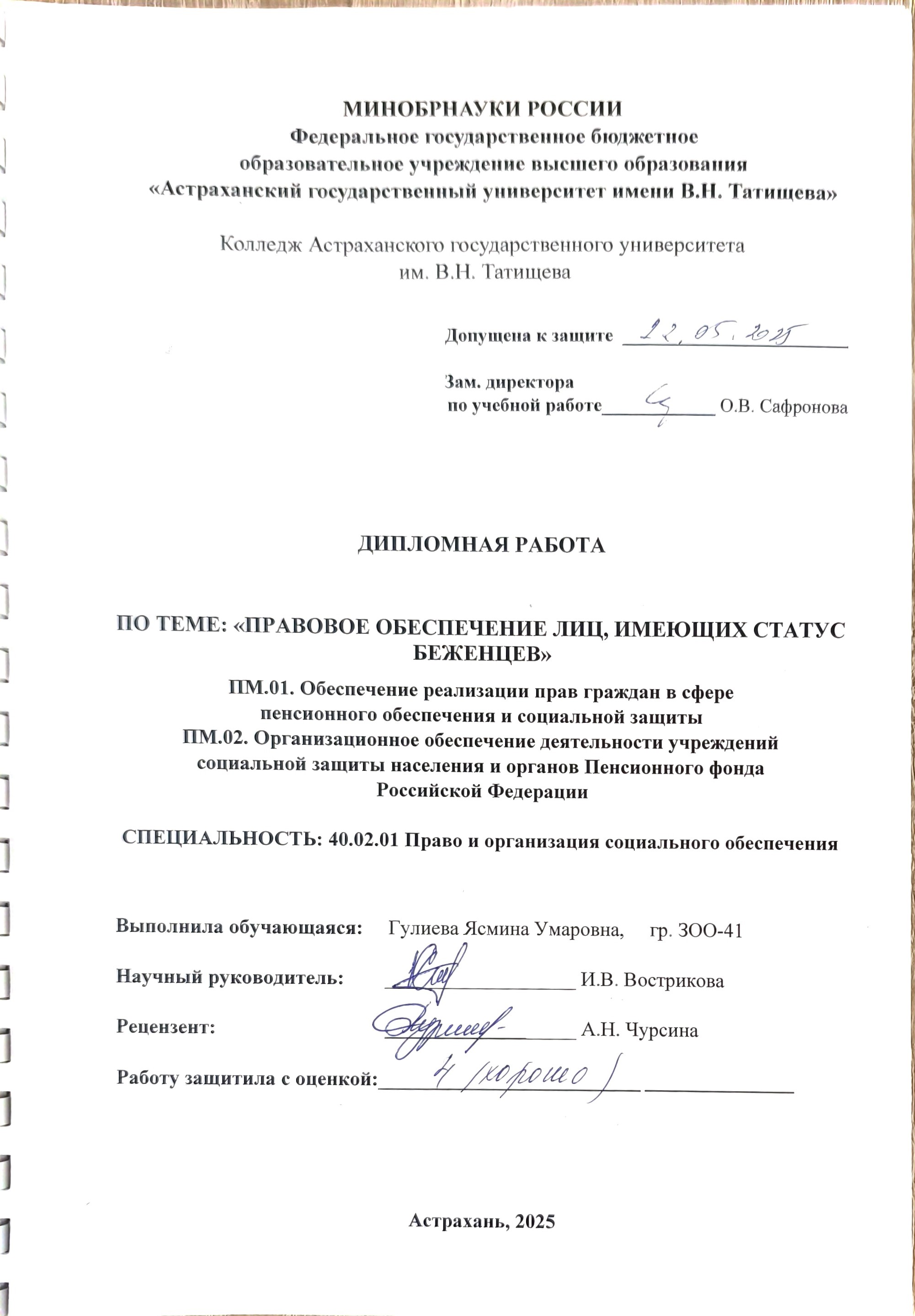 Правовое ,обеспечение ,лиц, имеющих, статус ,беженцев