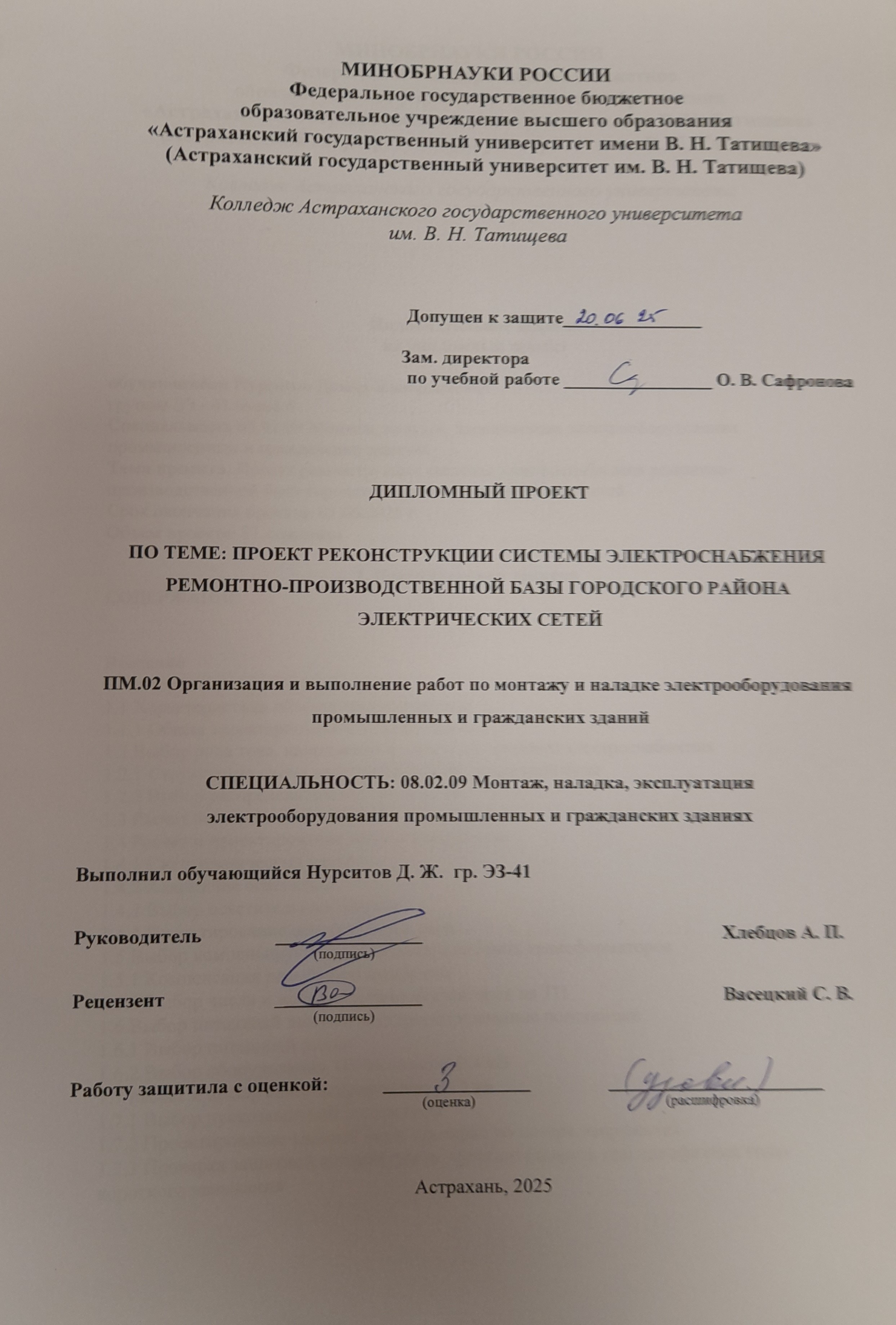 реконструкция, электроснабжение, ремонтно-производственная база, электрические цепи