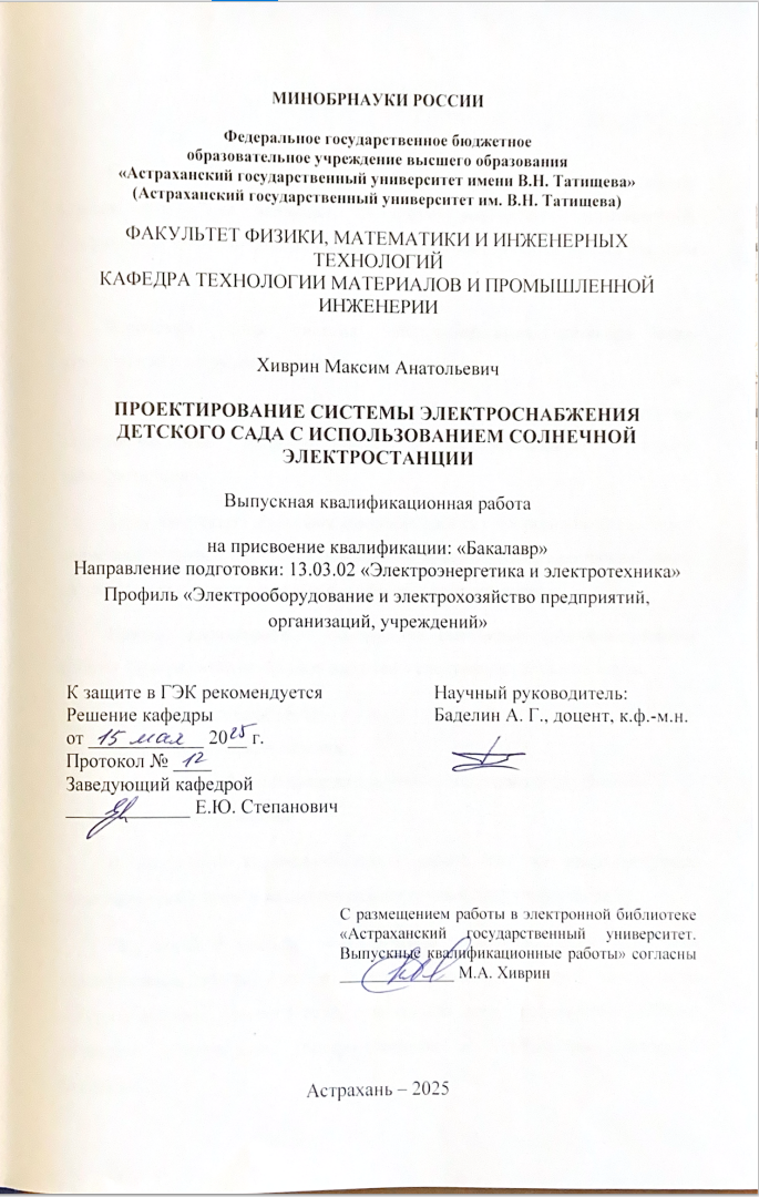 система электроснабжения, электрические нагрузки, солнечной электростанции