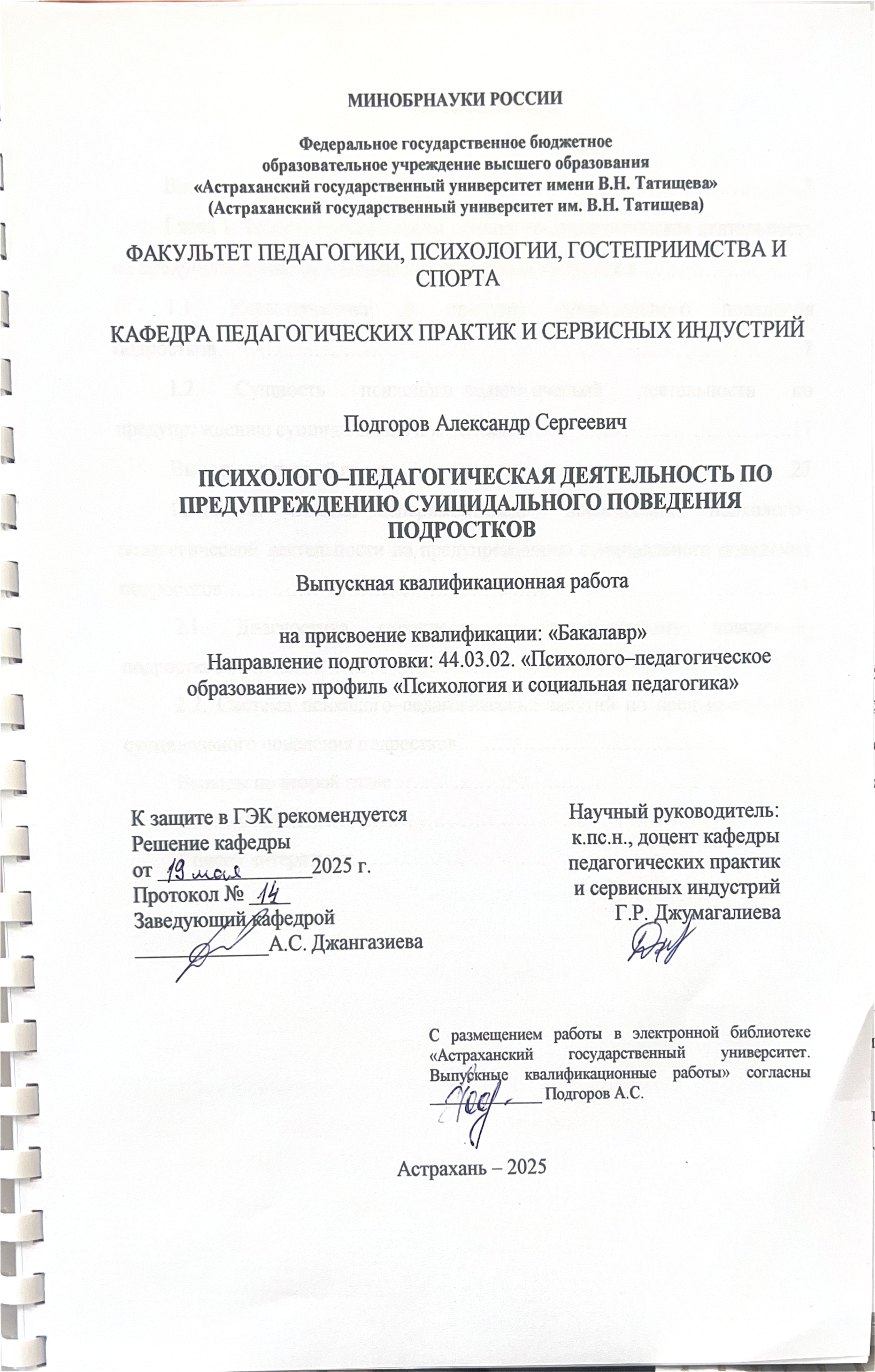 психолого-педагогическая деятельность, суицидальное поведение, профилактика поведения, поведение подростков
