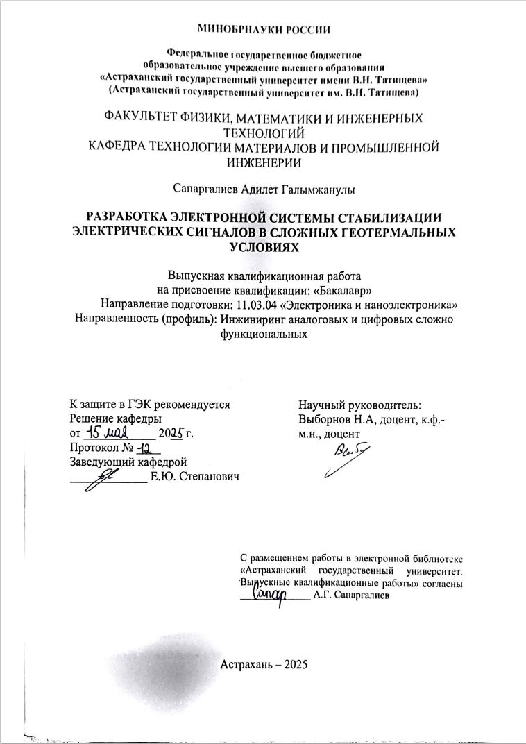 Выборнов Н.А., кандидат физико-математических наук, доцент