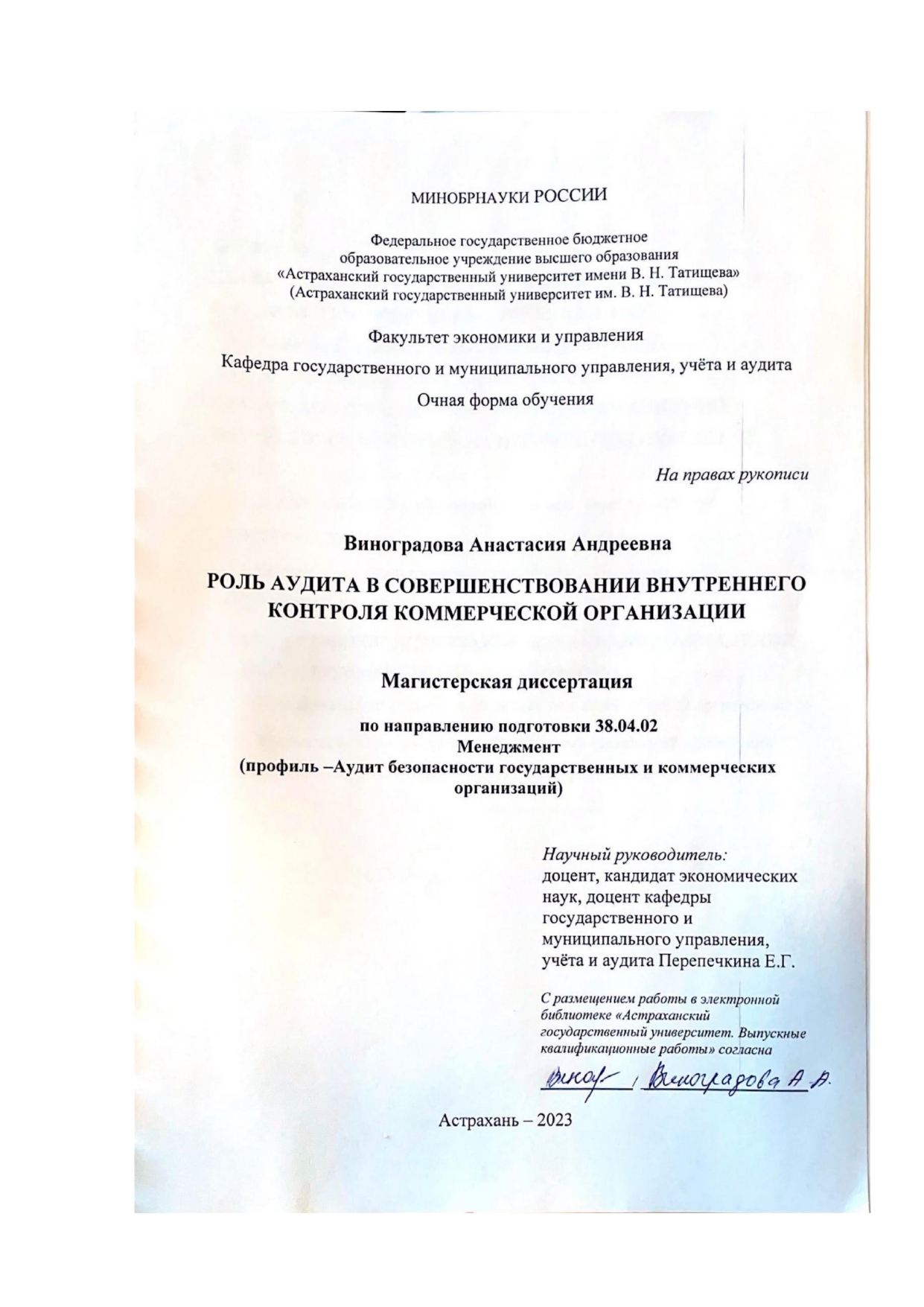 внутренний контроль, аудиторская проверка, современные технологии, ООО "Волжский минерал"
