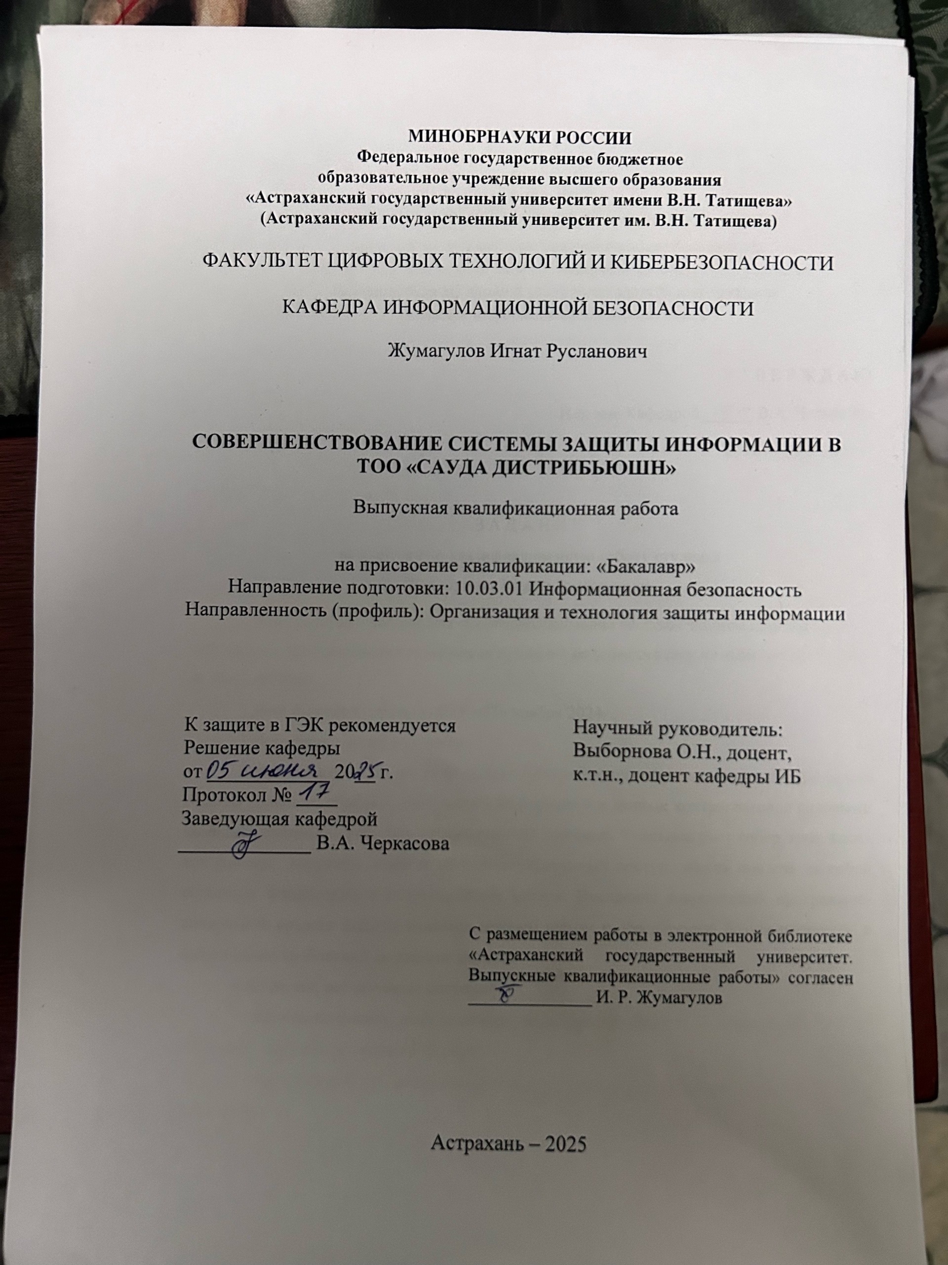 Цифровых технологий и кибербезопасности