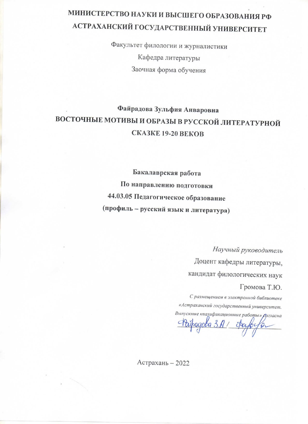Громова Татьяна Юрьевна, кандидат филологических наук