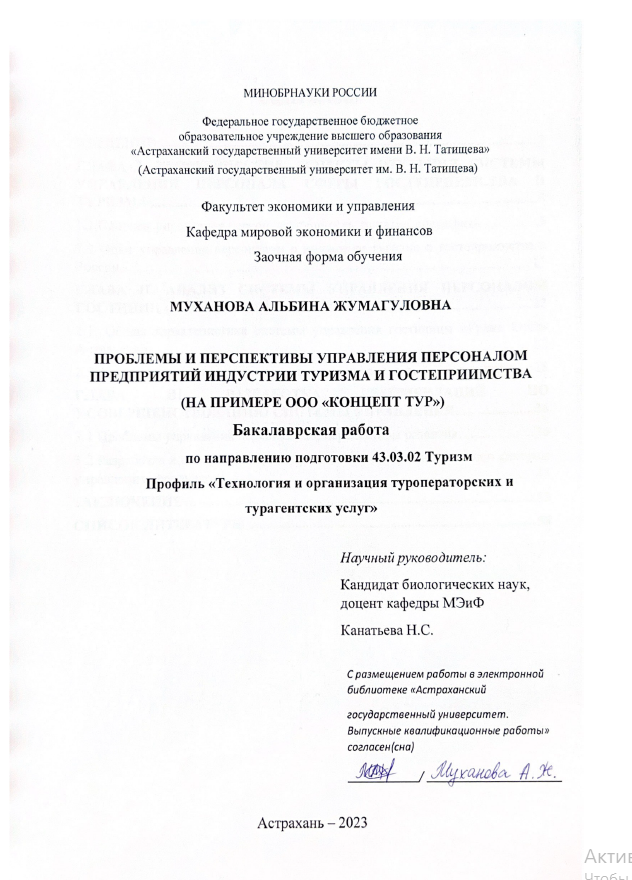 Проблемы и перспективы управления персоналом предприятий индустрии туризма и гостеприимства (на примере ООО «КОНЦЕПТ ТУР»)