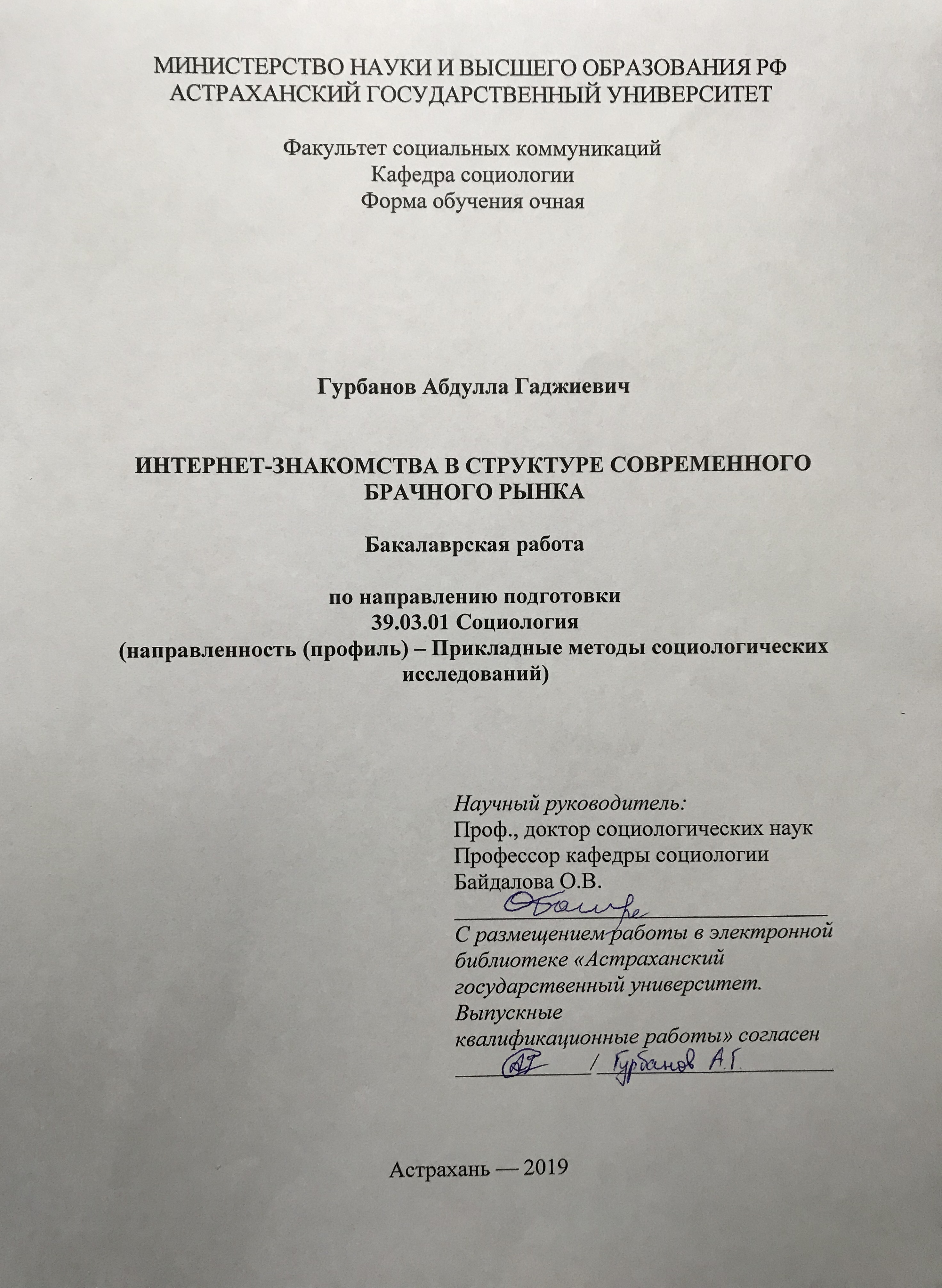 Интернет-знакомства в структуре современного брачного рынка в России: бакалаврская работа: очная форма: 39.03.01 Социология: направленность (профиль): Прикладные методы социологического исследования: факультет социальных коммуникаций: кафедра социологии