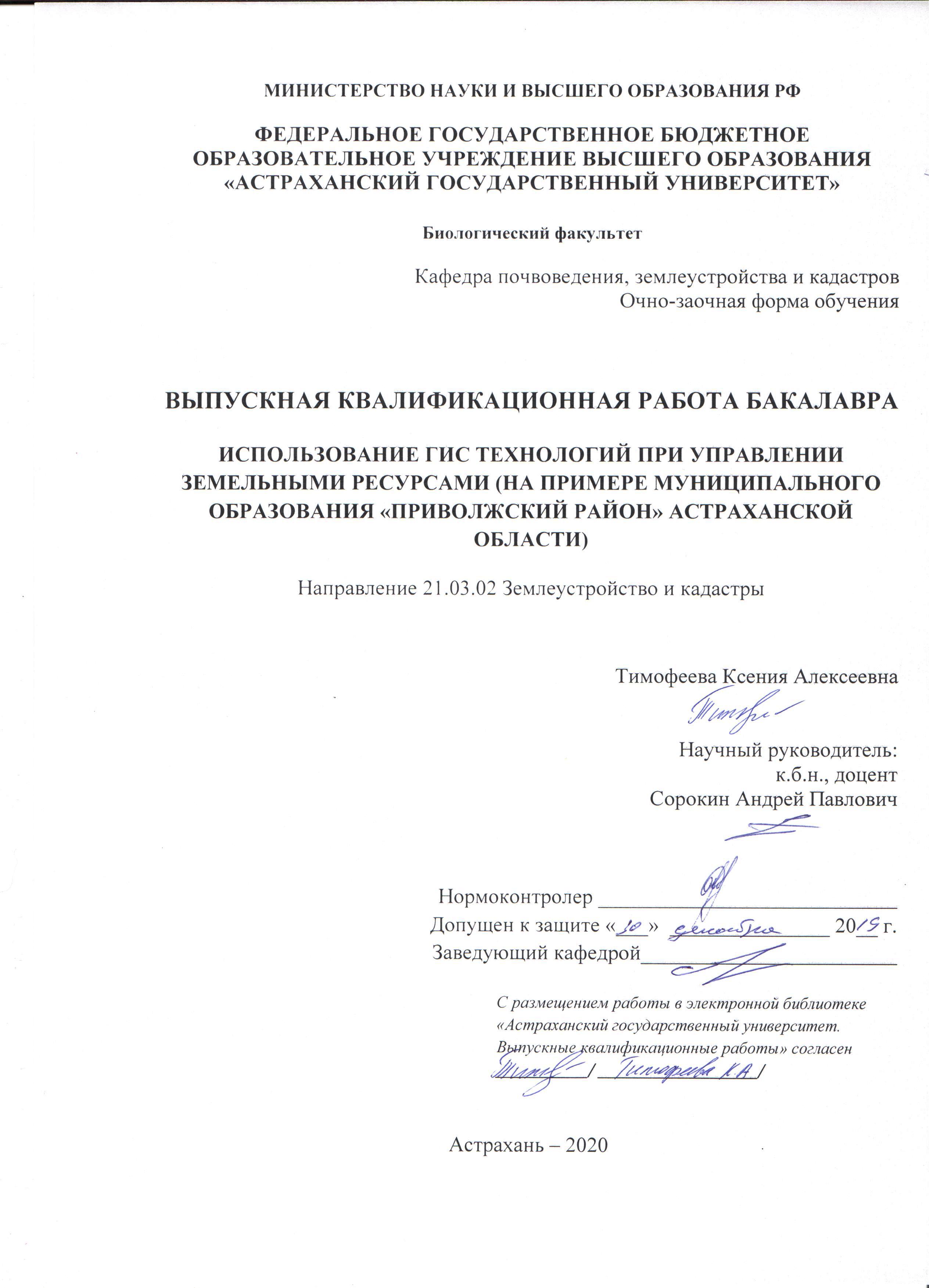 Главная»PDF-библиотека»Использование ГИС технологий при управлении земельными ресурсами (на примере Муниципального Образования «Приволжский район» Астраханской области): выпускная квалификационная работа бакалавра: очно-заочная форма: 21.03.02 Землеустройство и кадастры: биолог