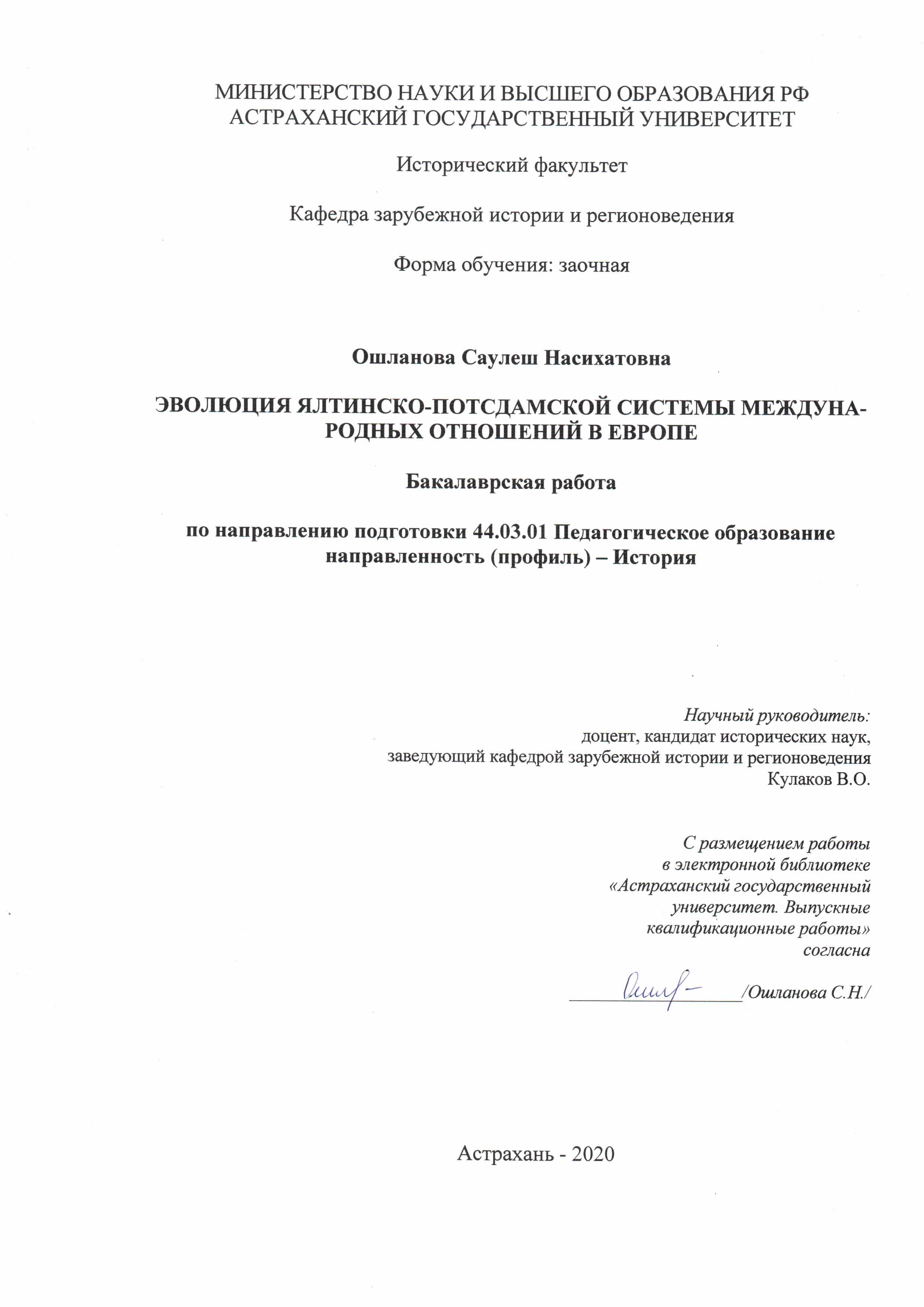 Эволюция Ялтинско-Потсдамской системы международных отношений в Европе: бакалаврская работа: заочная форма: 44.03.01 Педагогическое образование: направленность (профиль): История: исторический факультет:кафедра зарубежной истории и регионоведения
