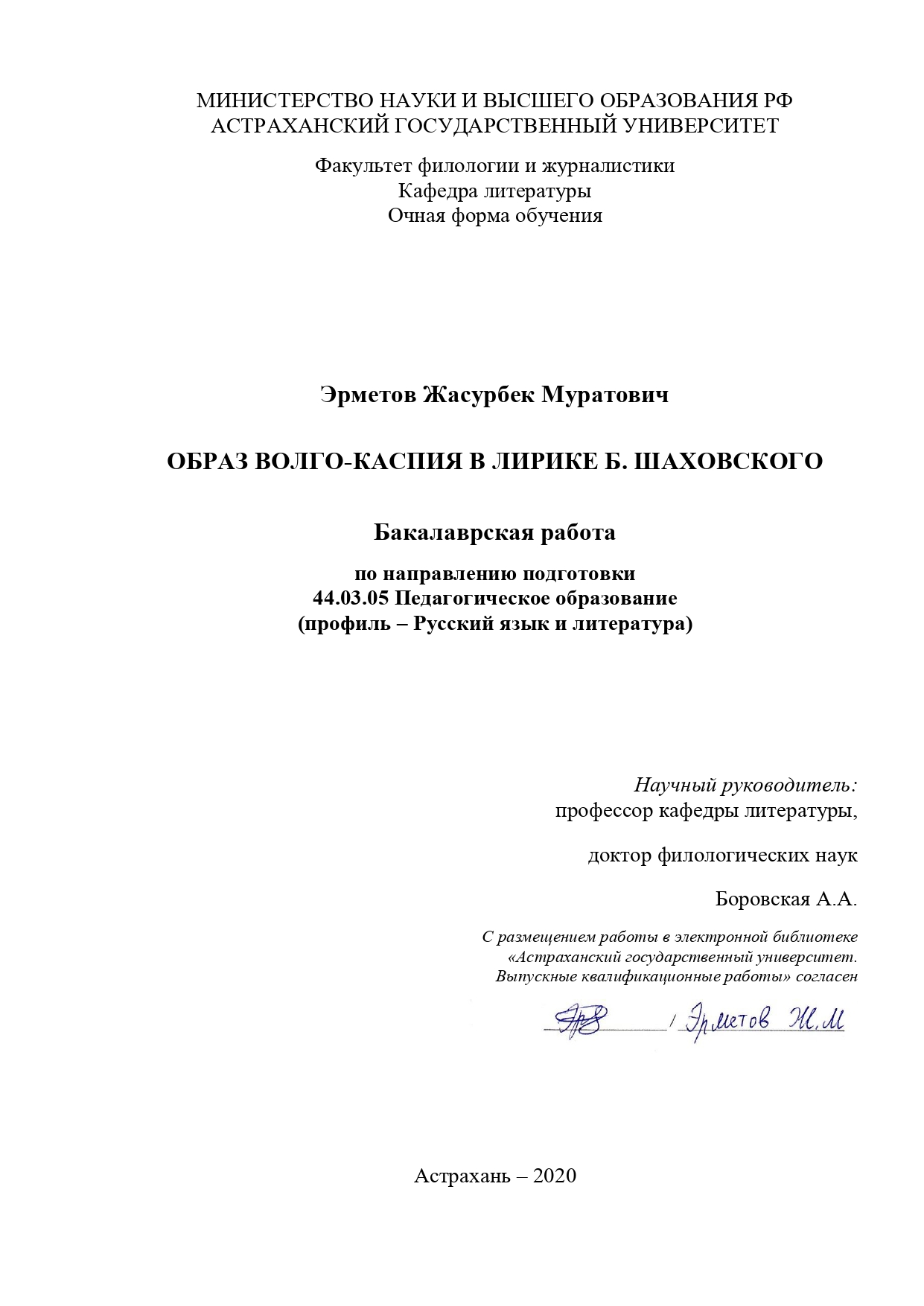 Главная»PDF-библиотека»Образ Волго-Каспия в лирике В. Шаховского: бакалаврская работа: очная форма : 44.03.05 Педагогическое образование : направление (профиль): Русский язык и литература : факультет филологии и журналистики: кафедра литературы