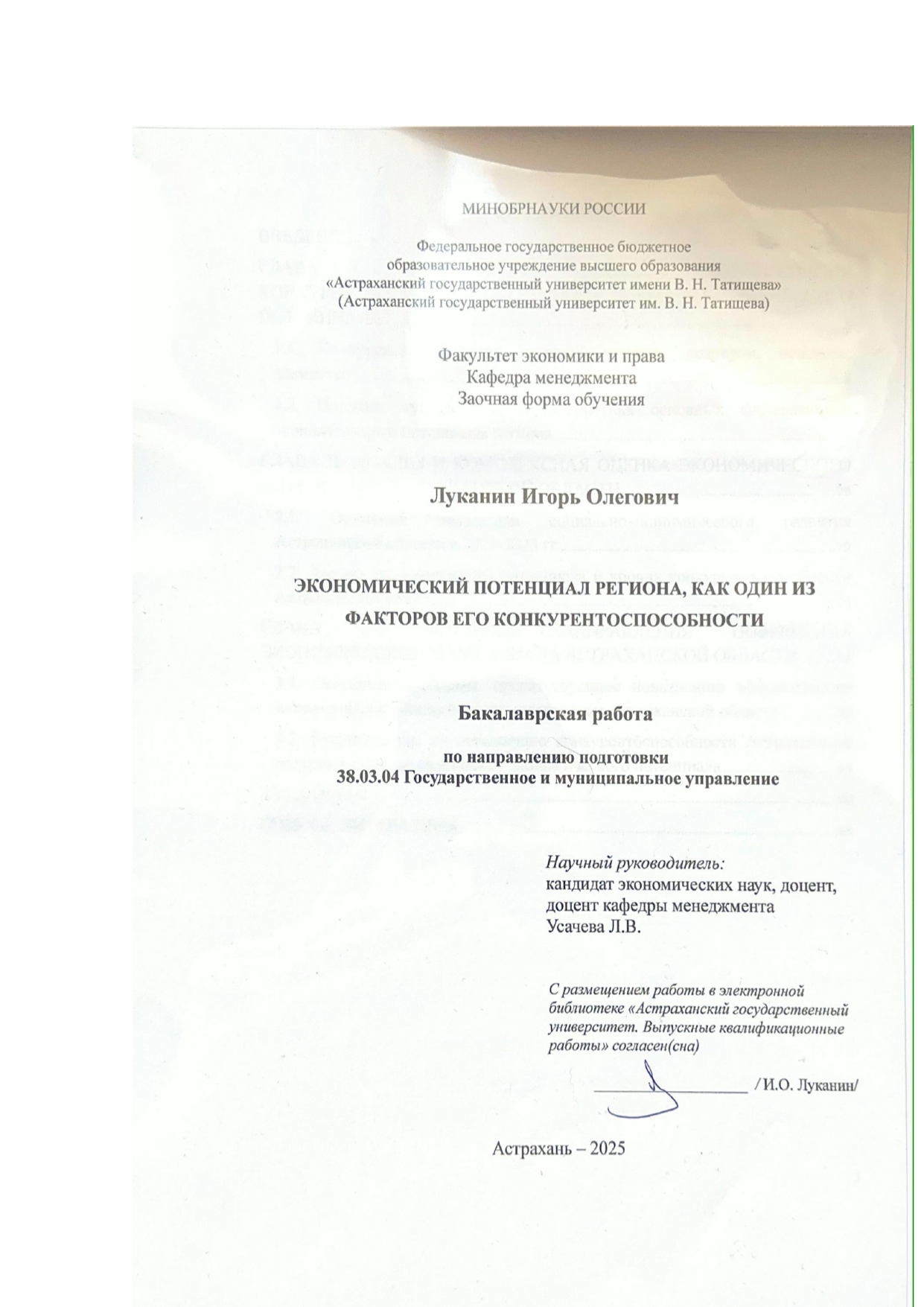 экономическое развитие местности, потенциал региона, конкурентоспособность
